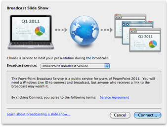 Microsoft Office 2011 ma liczne funkcje współautorstwa, pozwalające Tobie i Twoim współpracownikom tworzyć i edytować ten sam plik jednocześnie. PowerPoint z Microsoft 2011 może transmitować Twoją prezentację, co ułatwia prezentacje w biurze.